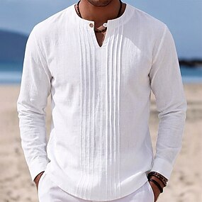Per uomo Camicia Camicia di lino Camicia Estiva Camicia da Spiaggia Tinta unica Casuale Vacanza Blu Nero Bianco Cachi Manica Lunga Collo alla coreana Estate Primavera Abbigliamento Arricciato