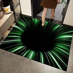 Tappeto decorativo moderno per ingresso con stampa piatta 2D, zerbino con illusione ottica 3D, design a tunnel con vortice verde