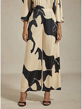 pantaloni larghi da donna in raso con stampa geometrica astratta, elastico in vita, plissettati, casual, eleganti, primavera estate autunno