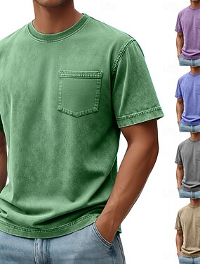 Per uomo Maglietta Manica Corta Girocollo Estate Primavera Tutte le stagioni Tinta unica Elegante Vintage Neutro Girocollo Sbiadito Puro Casuale Casa All'aperto Nero Rosa Blu reale Maglietta Top per