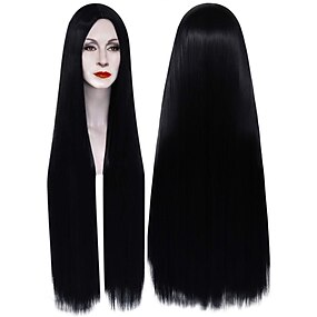 La Famiglia Addams 40 pollici 100 cm Parrucche Extra Lunghe Nere per Donne Capelli Dritti Parrucche Nere Naturali per Feste Morticia Addams Parrucca di Halloween per Donne