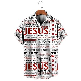 Per uomo Lettera Gesù Camicia Camicia con Bottoni Camicie Hawaiane Vintage Manica Corta Moda Streetwear Designer All'aperto Streetwear Quotidiano Estate Primavera Collo ripiegato Stampato Blu Bianco