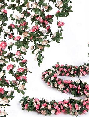 Ghirlanda di fiori artificiali da 8 x 8,2 piedi, rose rampicanti con foglie verdi, rose finte appese, per decorazioni da parete ad arco per feste in camera, casa, matrimonio, compleanno, Natale,