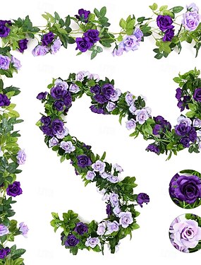 Ghirlanda di fiori artificiali da 8 x 8,2 piedi, rose rampicanti con foglie verdi, rose finte appese, per decorazioni da parete ad arco per feste in camera, casa, matrimonio, compleanno, Natale,