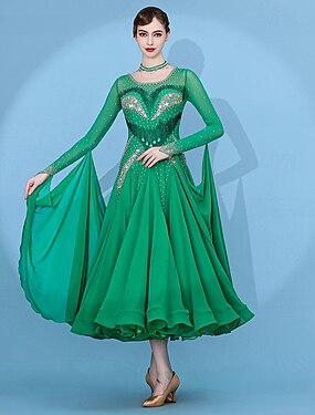 Abito da ballo da sala con strass, abito da ballo moderno a maniche lunghe da donna, abbigliamento e costumi per valzer.
