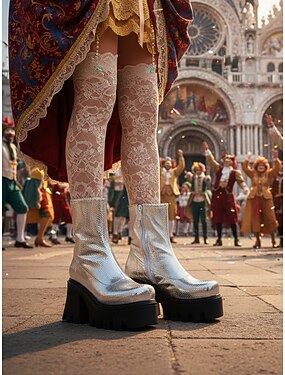 stivali da donna con plateau in metallo argentato, tacchi spessi e cerniera - stile disco anni '80, calzature da festa alla moda per serate fuori e balli