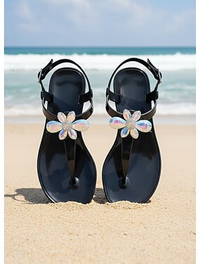 sandali da donna con cinturino a T decorato con fiori e suola ammortizzata, perfetti per le uscite estive casual