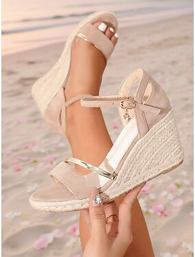 sandali con zeppa espadrillas da donna con cinturino alla caviglia: eleganti tacchi a punta aperta per gli invitati ai matrimoni in spiaggia, comodi sandali estivi per cerimonie all'aperto
