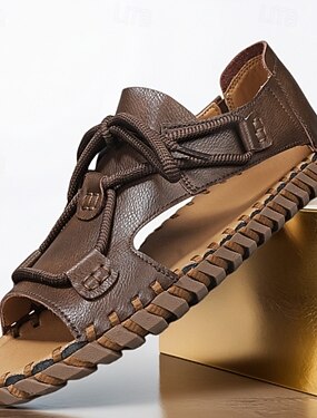 sandali da uomo in similpelle marrone con punta chiusa, design traspirante e traforato con suola antiscivolo, ideali per passeggiate estive, all'aperto e per uso casual