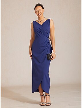 Per donna Abito Midi Tubino Elegante Festa serale Ospite di nozze Arricciato Spacco Tinta unica Senza Maniche Scollo a V Blu marino