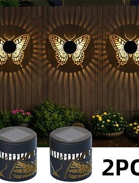2 luci da parete a proiezione a farfalla in metallo solare per esterni, IP44 impermeabile, per recinzioni, scale, lampade decorative per vialetti, giardino, cortile, luce da giardino per ville