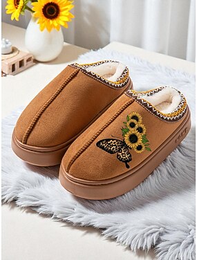 pantofole da donna con stampa a girasole - calde scarpe da interno foderate in pile con motivo a farfalla, comode calzature da casa per regali invernali