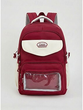 Zaino da donna in poliestere, borsa scolastica capiente nei colori macaron, spallacci regolabili, tasca frontale trasparente, multicolore, perfetto per il ritorno a scuola, i viaggi, le attività all'aperto e l'uso quotidiano.