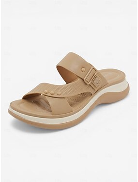 Sandali da donna color cammello con supporto plantare – ciabatte leggere e comode con rivetti &sandali imbottiti con design a fibbia e tomaia testurizzata per camminare e viaggiare &abbigliamento