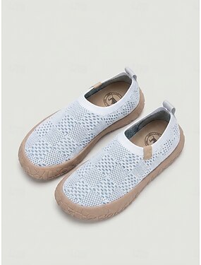 Sneakers slip-on da donna bianche in maglia traspirante: scarpe da passeggio leggere e ammortizzate, comode e flessibili per viaggiare, lavorare e per l'uso quotidiano. &attività all'aperto