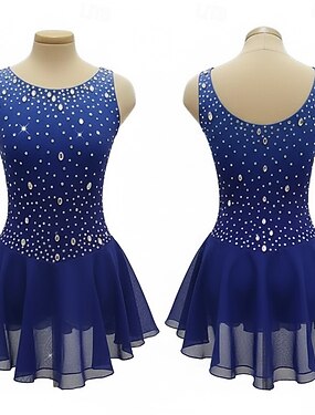 Abito da pattinaggio artistico Per donna Pattinaggio sul ghiaccio Vestito Blu Patchwork Schiena aperta Alta elasticità Allenamento Competizione Vestiti da pattinaggio sul ghiaccio Classico Cristallo