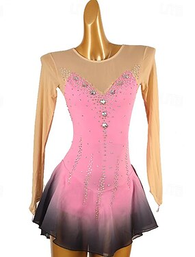 vestito da pattinaggio artistico vestito da pattinaggio su ghiaccio da donna e da ragazza rosa patchwork foro per il pollice spandex elastico allenamento pratica abbigliamento da pattinaggio