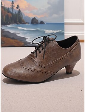 Scarpe col tacco vintage oxford da donna in stile edoardiano – scarpe brogue in pelle con lacci bordeaux, stile retrò anni '10-'1900 per ricevimenti del tè, rievocazioni storiche ed eleganti eventi serali