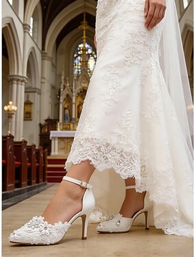 sandali da sposa con tacco a spillo e cinturino alla caviglia in pizzo bianco da donna – tacchi da sposa aperti per cerimonia, ricevimento e ballo