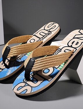 Infradito casual da uomo, tomaia stampata con comodo cinturino in corda sulla punta, sandali estivi leggeri da spiaggia per uomo, ideali per le vacanze al mare, il relax a bordo piscina e l'abbigliamento casual per le attività all'aperto.
