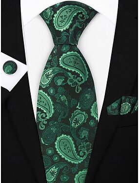 set regalo da uomo con cravatta paisley in poliestere, gemelli, fazzoletto da taschino e fermacravatta, perfetto per matrimoni e regali