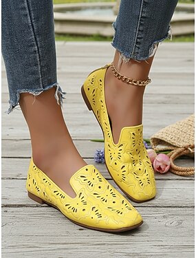 scarpe basse gialle da donna con ritagli – design traspirante e traforato, mocassini slip-on di ispirazione vintage per primavera ed estate, passeggiate, viaggi, tempo libero e outfit quotidiani