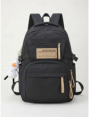Zaino da campus color macaron per ragazze, impermeabile, di grande capacità, con spille decorative, portachiavi con orsetto di peluche e tasche multiple, adatto per studenti adolescenti e per l'uso quotidiano nel campus.