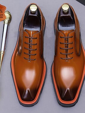 scarpe eleganti stringate color cuoio da uomo, scarpe formali, perfette per matrimoni, eventi formali, testimoni dello sposo e occasioni di lavoro, scarpe da sposa eleganti e comode