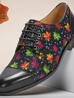 Scarpe eleganti da uomo con stampa floreale e lacci, modello Oxford nero con punta rinforzata, perfette per uomini alla moda, ideali per matrimoni, feste serali, banchetti e occasioni speciali.