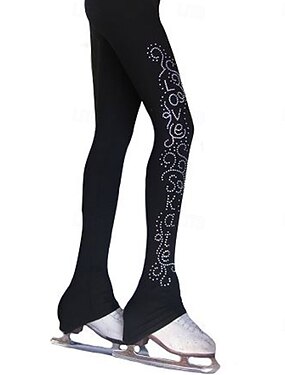 pantaloni da pattinaggio artistico da donna e da ragazza, pantaloni da pattinaggio sul ghiaccio, neri, elastici, abbigliamento da pattinaggio per gare di allenamento, termici, caldi, con