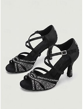 Scarpe da ballo latino-americane professionali da donna - in camoscio nero con strass, adatte per balli da sala