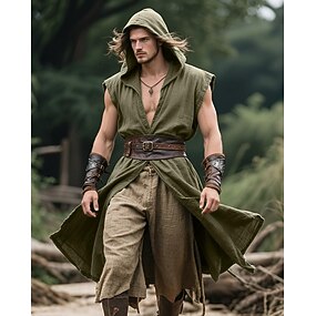 Retrò Vintage Medievale Rinascimento Gilet Tunica Guerriero Vichingo Costume Per uomo Vichingo Halloween Carnevale Performance Feste LARP Adulti Cintura Tutte le stagioni