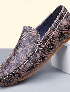 mocassini da guida da uomo marroni stampati, scarpe slip-on casual leggere e comode per l'uso quotidiano, la guida, i viaggi, gli outfit del fine settimana, l'ufficio e lo stile smart casual da gentiluomo