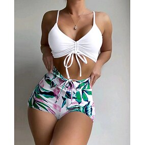Per donna Costume da bagno 2 pezzi Costumi da bagno Tropicale Con zip Boyleg Asciugatura Rapida Alta elasticità Senza Maniche Costume da Bagno Costume da bagno Surf Snorkeling Nuoto Estate
