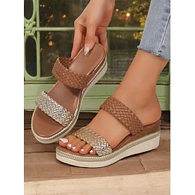 sandali con plateau intrecciati da donna con doppi cinturini, scarpe estive casual con accenti metallici, calzature comode per le vacanze e l'uso quotidiano