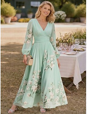 Per donna Abito maxi Vestito in Chiffon Abito Floreale Abito Stampato Elegante Moda Moderno All'aperto Vacanza Ferie Vestibilità regolare Floreale Manica Lunga Scollo a V Verde chiaro Rosa Blu Reale