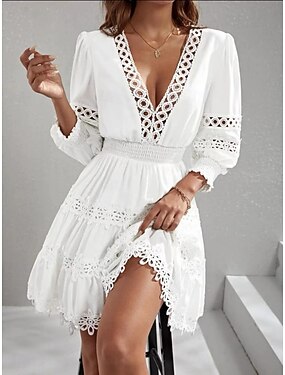 Per donna Mini Abito Abito in Pizzo Abito Bianco Elegante Moda Moderno All'aperto Vacanza Uscire Vestibilità regolare Semplice Manica Lunga Scollo a V Bianco Estate Primavera