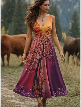 Per donna Abito lungo maxi Abito Midi Vestito Casual Vestito T-Shirt Abito Stampato Streetwear Casual All'aperto Vacanza Uscire Vestibilità regolare Floreale Pavone Pesce Senza Maniche Scollo a V