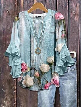 Per donna Camicia Camicia Boho Blusa Stampato Grafico Vintage Elegante Classico Manica Lunga Scollo a V Top Regolari Quotidiano Ferie Uscire Nero Rosa Estate Primavera