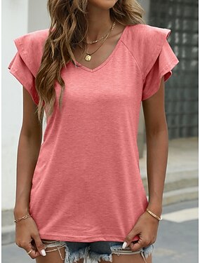 Per donna Maglietta Volant Semplice Moda Elegante Classico Manica Corta Scollo a V Top Regolari Quotidiano Uscire Weekend Blu Nero Bianco Verde chiaro Rosa Estate Primavera