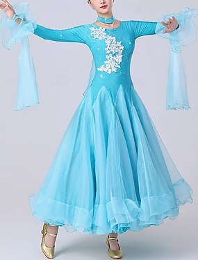 Balli da sala Abito A fantasia Per donna Prestazioni Feste Manica lunga Chiffon Retato Elastene