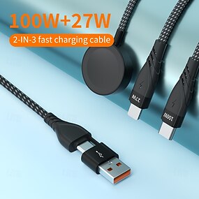 Articoli essenziali da viaggio per caricabatterie Apple Watch 3 in 2, cavo USB C, cavo di ricarica multiplo USB C/L per auto, articoli essenziali da campeggio, caricabatterie iWatch per Ultra/SE/10-1