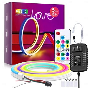 barra luminosa a led striscia luminosa al neon 1-5m indirizzabile rgb arcobaleno led pixel barra luminosa dc12v incluso alimentatore e rf controller 17key applicabile a fai da te led neon segno arte decorazione murale ws2811