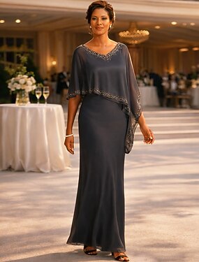 Tubino Colonna Lunghezza al pavimento Abito da invitata a nozze Abito a Portafoglio Abito da sera Abito da cerimonia per signora Manica Corta Scollo a V Elegante Vintage Chiffon con Pizzo Incrociato