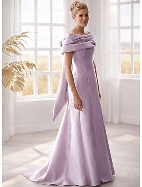 Linea ad A Lunghezza al pavimento Abito da invitata a nozze Abito Formale Abito da sera Abito da cerimonia per signora Senza Maniche Senza Spalle Elegante Formale Raso con Fiocco/Fiocchi Pieghe