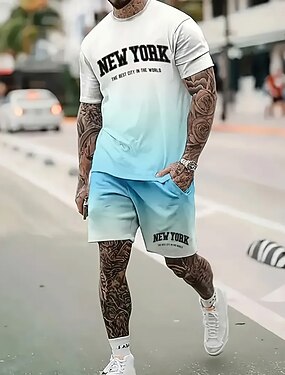 Per uomo Blocco di colori 2 pezzi Set di magliette Top estivi Manica Corta Pantaloni corti Girocollo Casual Athleisure All'aperto Sport Quotidiano Stampa 3D Estate Blu bianco