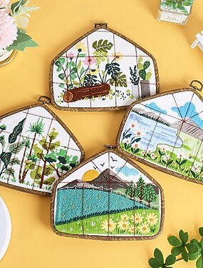 kit di ricamo per principianti per adulti - kit di ricamo di fiori e piante grasse - kit completo di ricamo a mano fai da te - set di punto croce, kit di artigianato fai da te