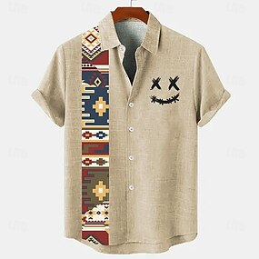 Per uomo camicia di lino camicie retrò Camicia d'epoca Camicia etnica Faccia sorridente Esterno Informale Blu Marrone Verde Manica corta Colletto alla coreana Estate Primavera Abbigliamento Stampa