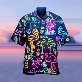Per uomo Tropicale Fluorescente Camicia Camicia hawaiana Camicia da campo Manica corta Camicia Collo ripiegabile Di tendenza Hawaiano Originale Strada Informale Giornaliero Giallo Rosso Viola chiaro