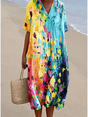 Per donna Mini Abito Vestito Estivo Vestito Casual Abito Estivo Mini abito Casual Quotidiano Spiaggia Vacanza Vestibilità regolare Floreale Grafico Stile Boho Senza Maniche Scollo a V Blu Rosso Viola